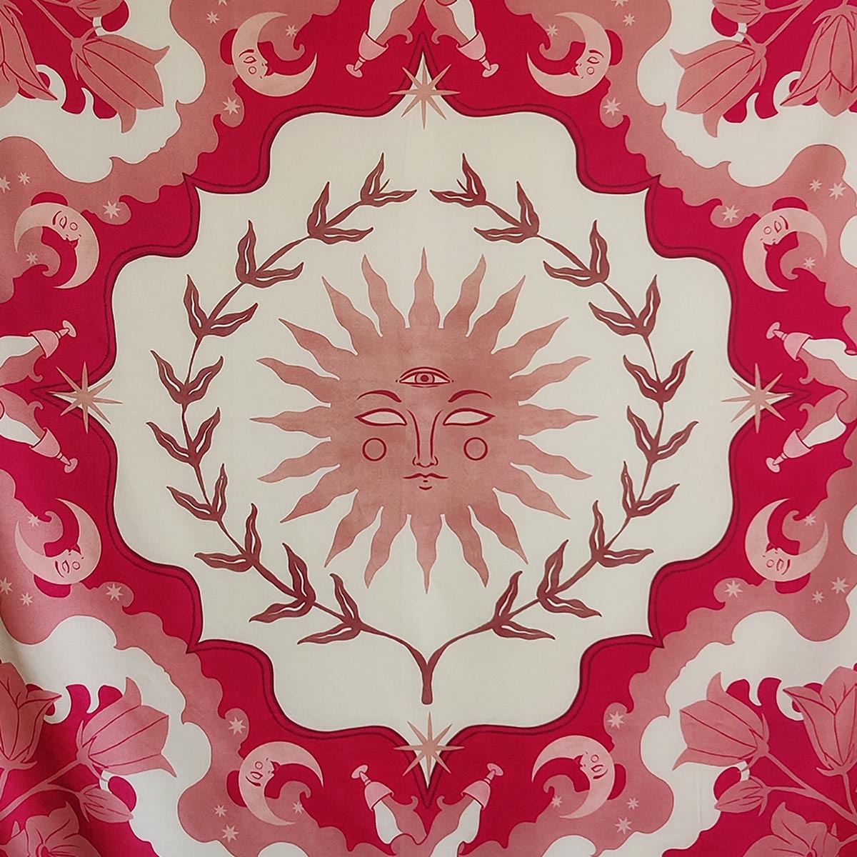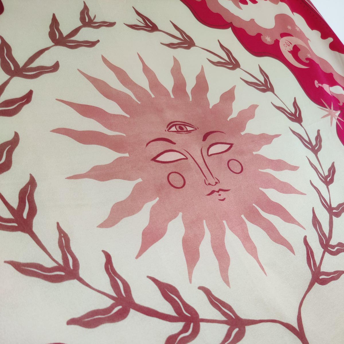 This dreamy design is a celebration of femininity, and features the sun at the centre, surrounded by foliage, the moon and stars and the sacred chalice. Printed in limited numbers, here in the UK.